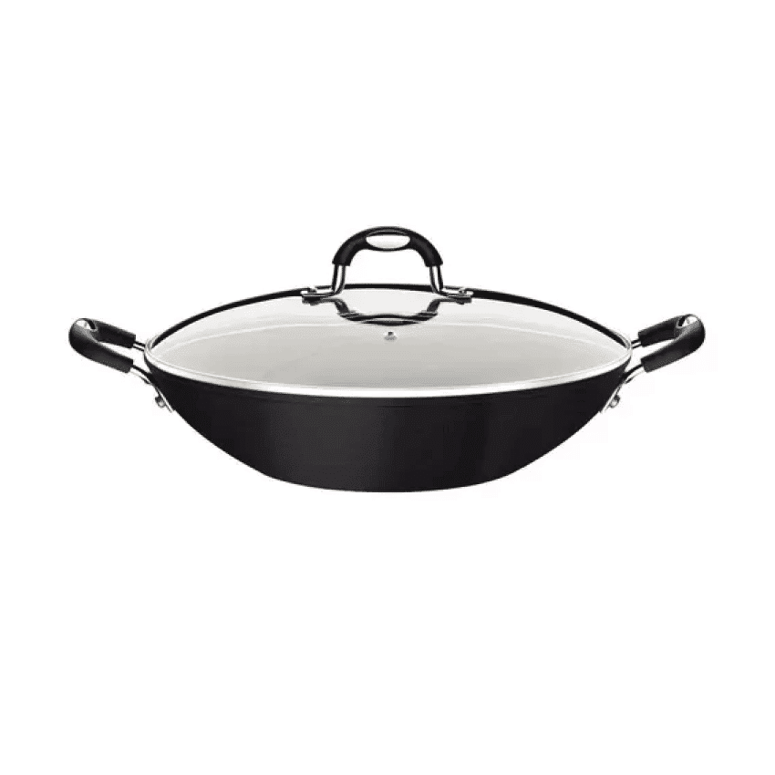 מחבת ווק דגם מונקו מאלומיניום עם ציפוי נון-סטיק שחור עם מכסה זכוכית 32 ס"מ 4.5 ליטר מבית טרמונטינה.