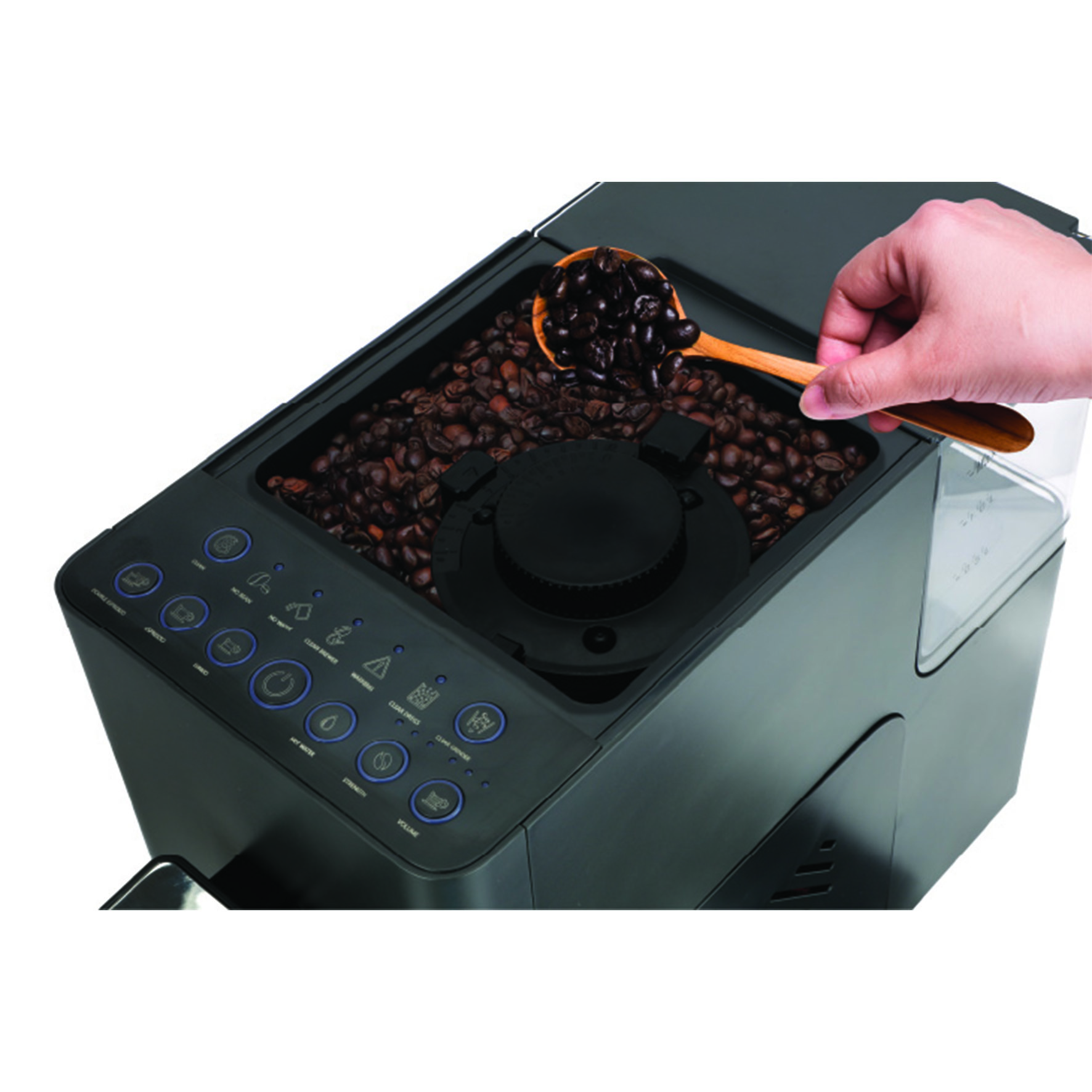 המטחנה המובנית בתוך המכונה מאפשרת לנו עד 15 דרגות טחינה והכל בלחיצת כפתור אחת