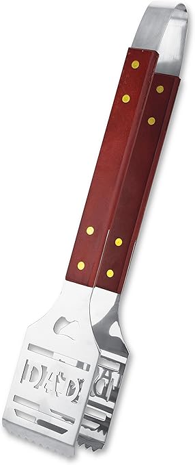 • מלקחיים ענקיות עם ידית עץ ומשטח נירוסטה שעליו המילה DAD