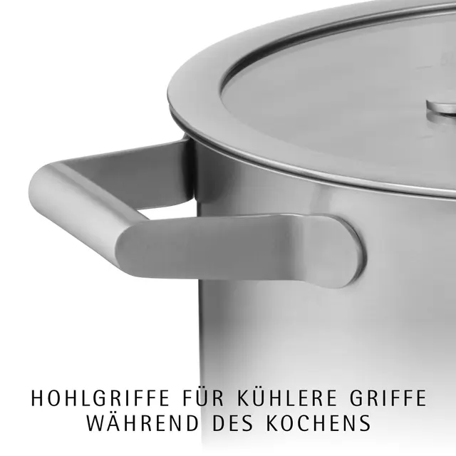 הסירים והמכסים, העשויים מפלדת אל-חלד Cromargan®: 18/10 עמידה וקלה לטיפול בגימור מט, וזכוכית איכותית, ניתנים לשטיפה במדיח כלים לניקוי נוח.